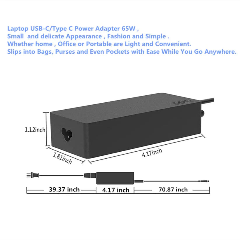 • Output: 20 V ~ 3.25 A ~ 65 W, Input: 100 ~ 240 V / 50 ~ 60 Hz; Connector: Yellow square USB tip (be carefully!!! Not Type C Charging Tip!!)